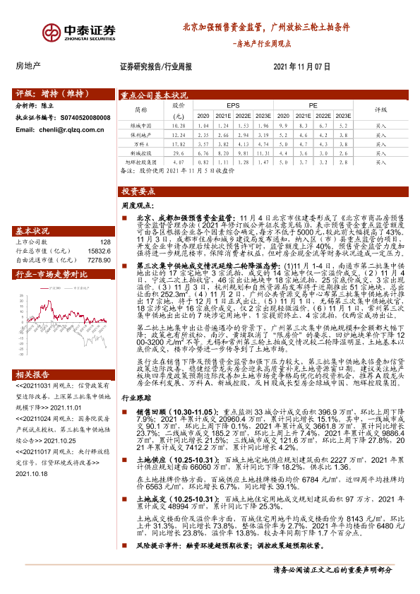 【中泰证券】【20211107】北京加强预售资金监管,广州放松三轮土拍条件-11页