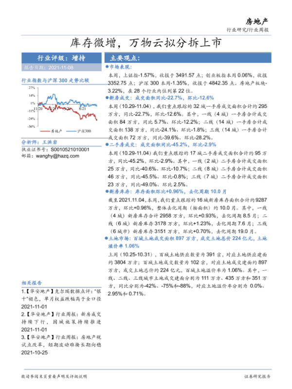 【华安证券】【20211108】房地产行业周报:库存微增,万物云拟分拆上市-17页