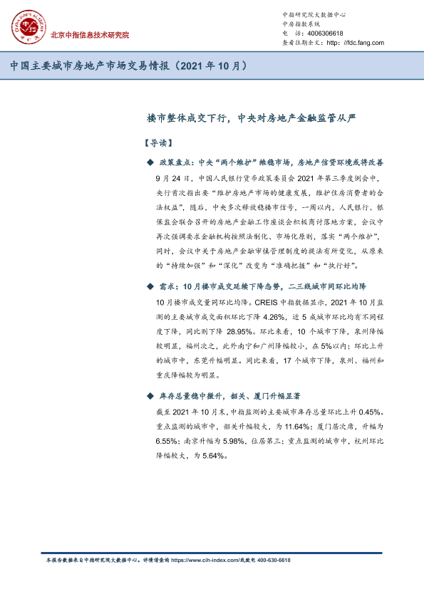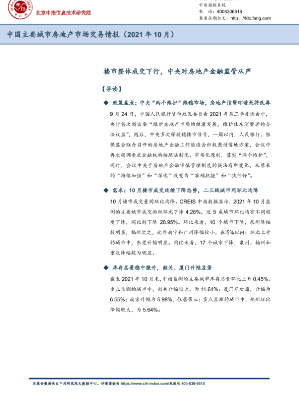 【中指研究院】【20211108】中国主要城市房地产市场交易情报-12页