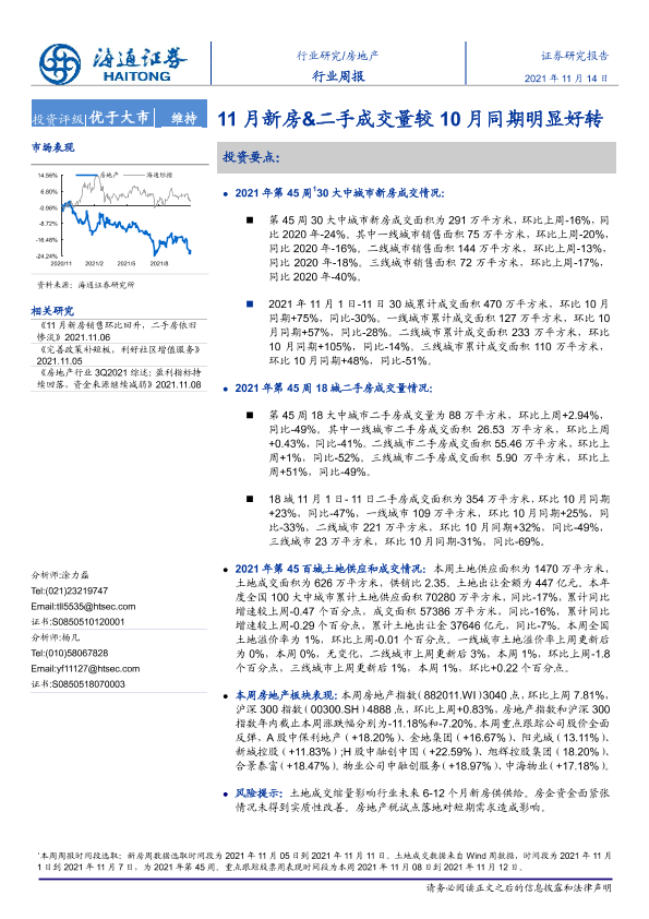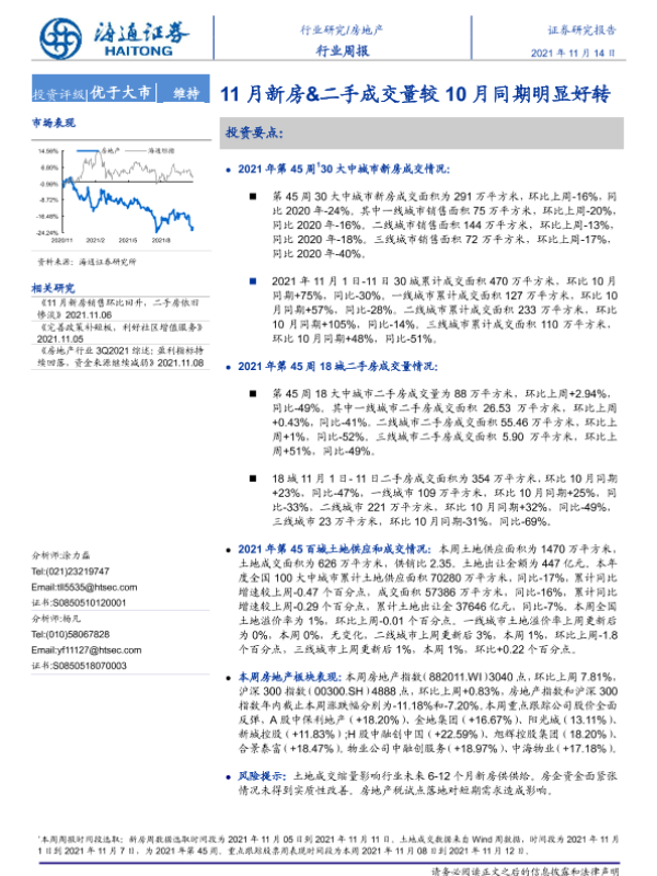 【海通证券】【20211114】房地产行业周报:11月新房&二手成交量较10月同期明显好转-6页