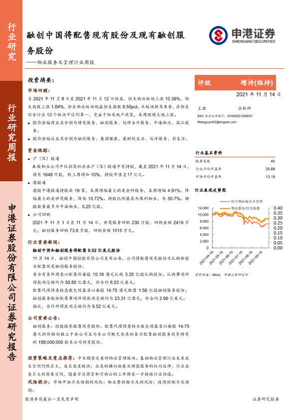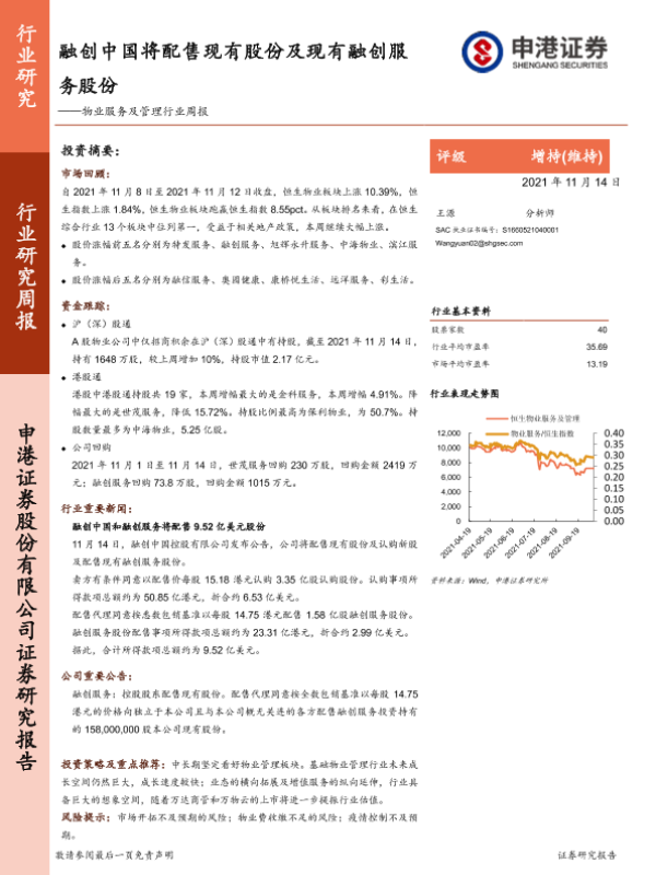 【申港证券】【20211114】物业服务及管理行业周报:融创中国将配售现有股份及现有融创服务股份-7页