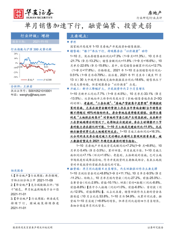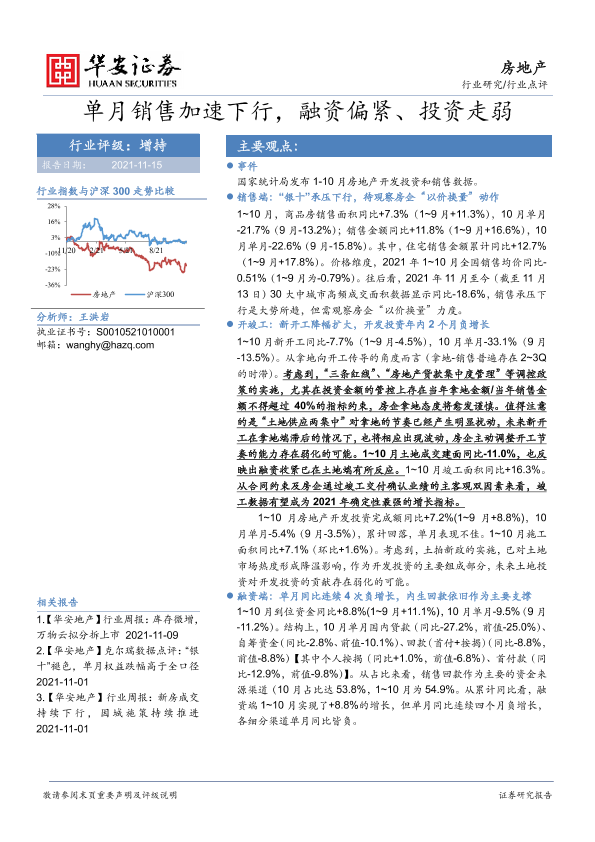 【华安证券】【20211115】单月销售加速下行,融资偏紧、投资走弱-3页