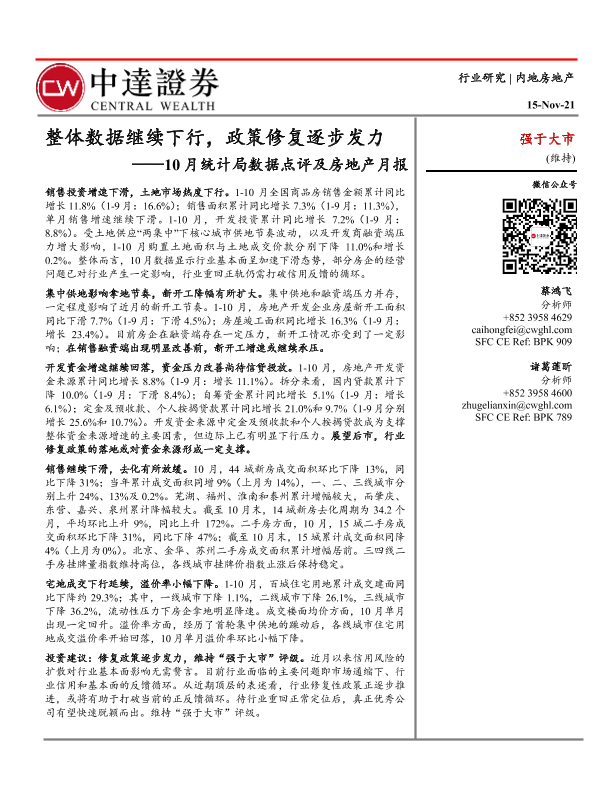 【中达证券】【20211115】内地房地产10月统计局数据点评及房地产月报-25页