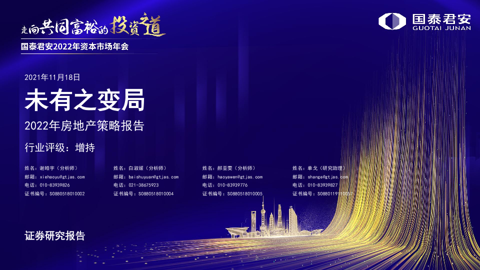【国泰君安证券】【20211118】2022年房地产策略报告:未有之变局-26页