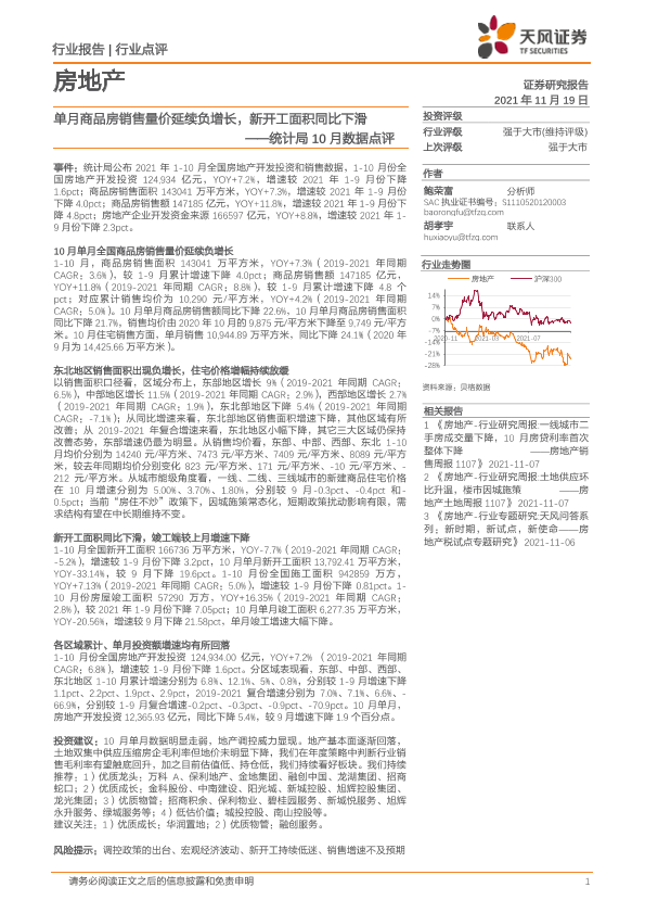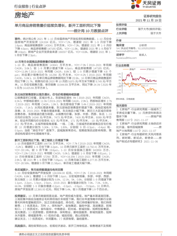 【天风证券】【20211119】单月商品房销售量价延续负增长,新开工面积同比下滑-2页