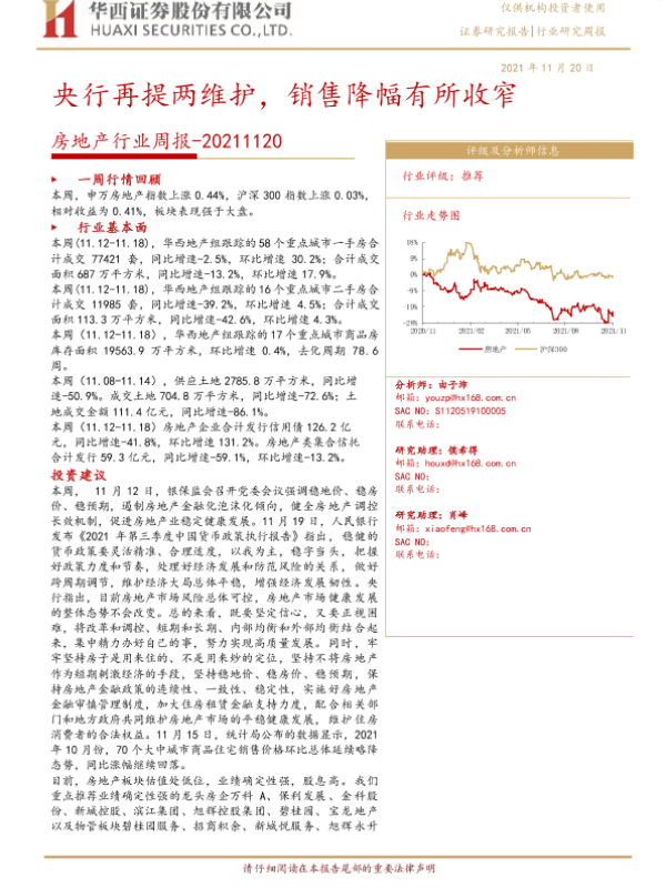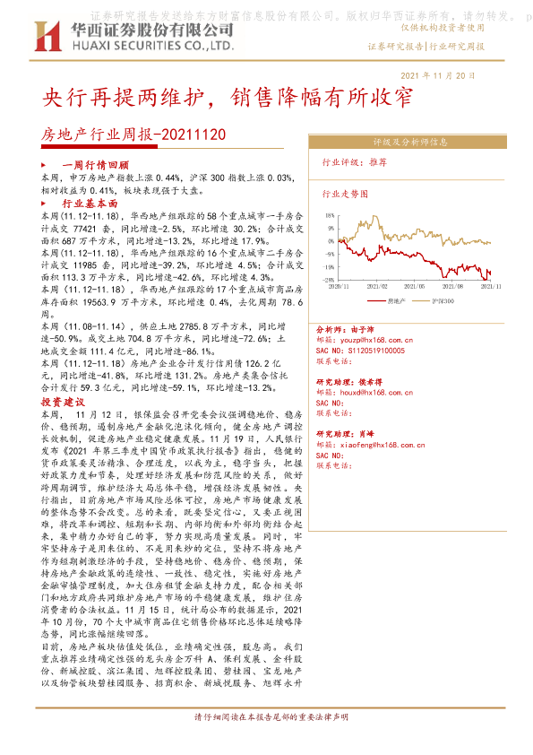 【华西证券】【20211120】房地产行业周报:央行再提两维护,销售降幅有所收窄-27页