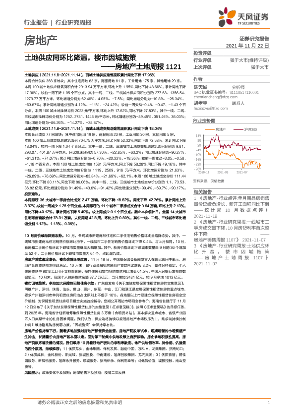 【天风证券】【20211122】房地产土地周报:土地供应同环比降温,楼市因城施策-8页