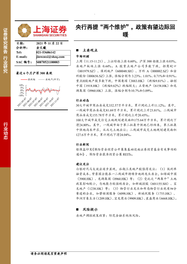【上海证券】【20211122】央行再提“两个维护”,政策有望边际回暖-13页