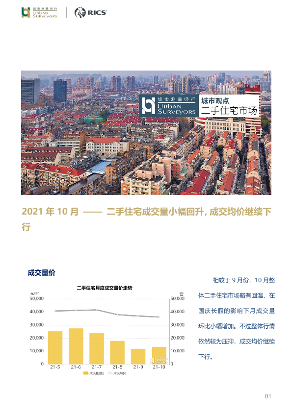 【城市测量师行】【20211123】2021年10月——二手住宅成交量小幅回升,成交均价继续下行-6页