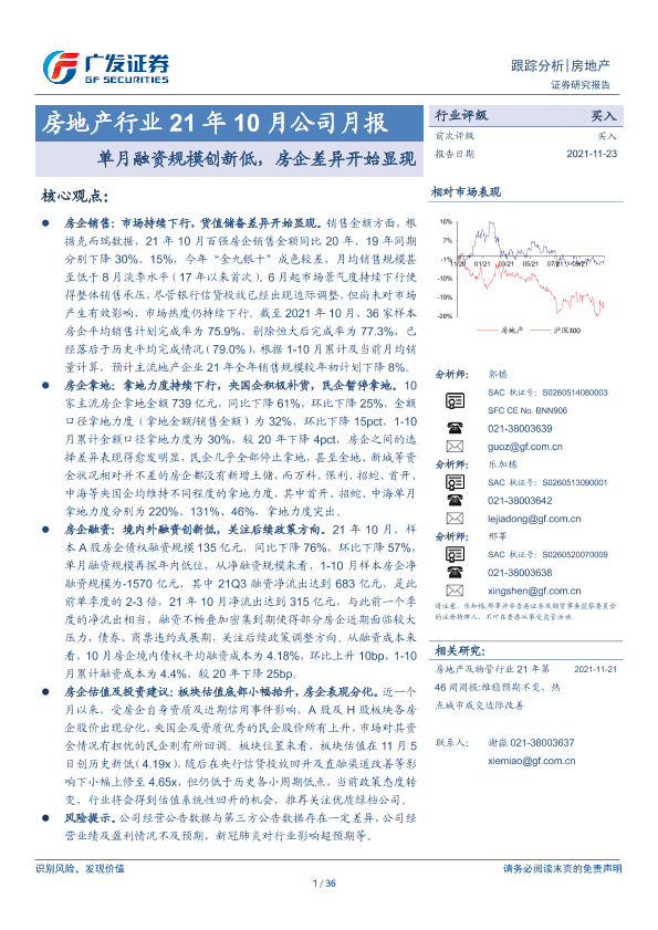 【广发证券】【20211123】房地产行业21年10月公司月报:单月融资规模创新低,房企差异开始显现-36页