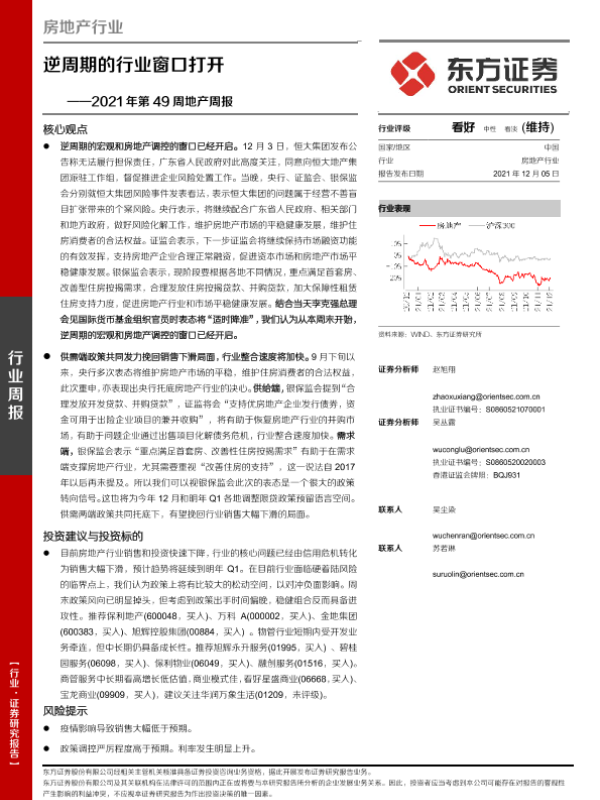 【东方证券】【20211205】2021年第49周地产周报:逆周期的行业窗口打开-18页