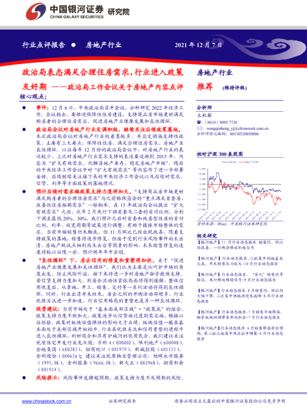 【银河证券】【20211207】政治局工作会议关于房地产内容点评:政治局表态满足合理住房需求,行业进入政策友好期-2页