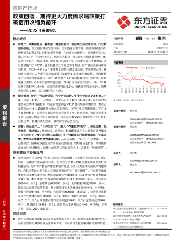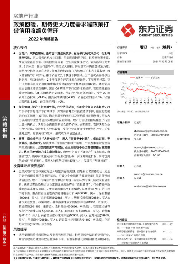 【东方证券】【20211208】房地产行业2022年策略报告:政策回暖,期待更大力度需求端政策打破信用收缩负循环-45页