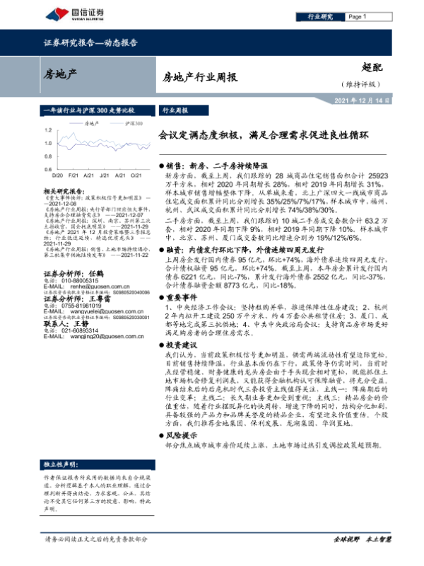 【国信证券】【20211214】房地产行业周报:会议定调态度积极,满足合理需求促进良性循环-8页