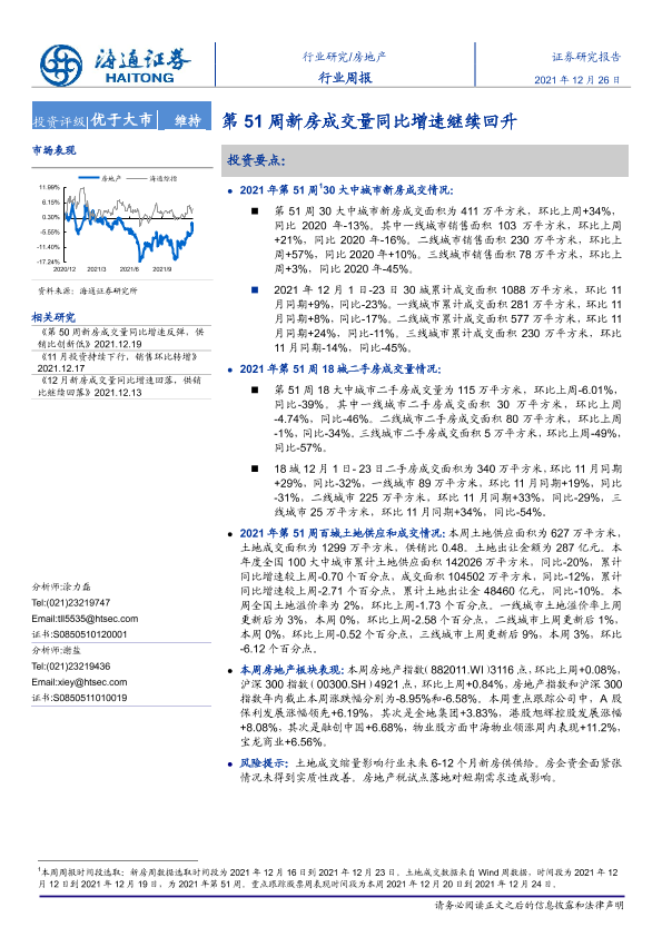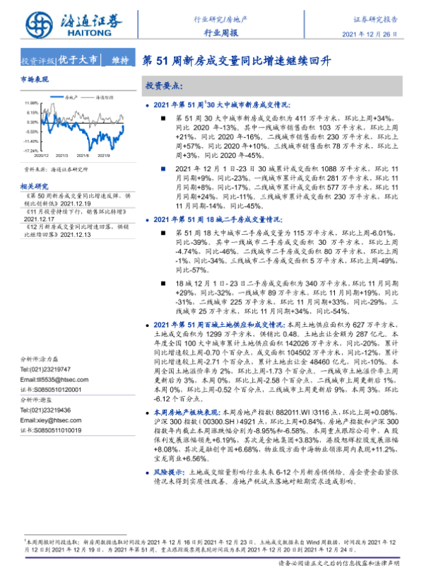 【海通证券】【20211226】房地产行业周报:第51周新房成交量同比增速继续回升-6页