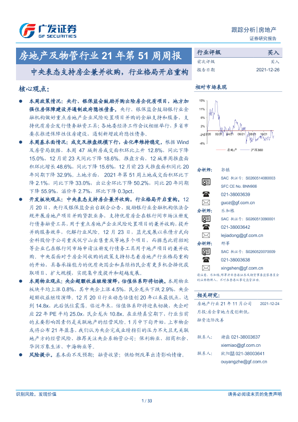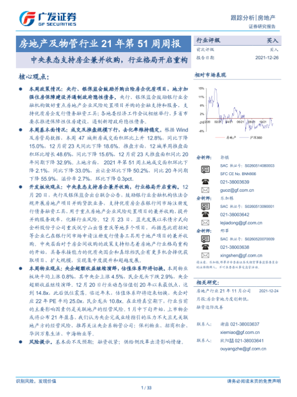 【广发证券】【20211226】房地产及物管行业21年第51周周报:中央表态支持房企兼并收购,行业格局开启重构-33页