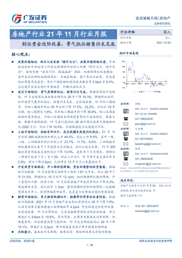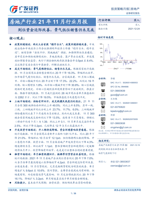 【广发证券】【20211224】21年11月行业月报:到位资金边际改善,景气低位销售仍未见底-36页