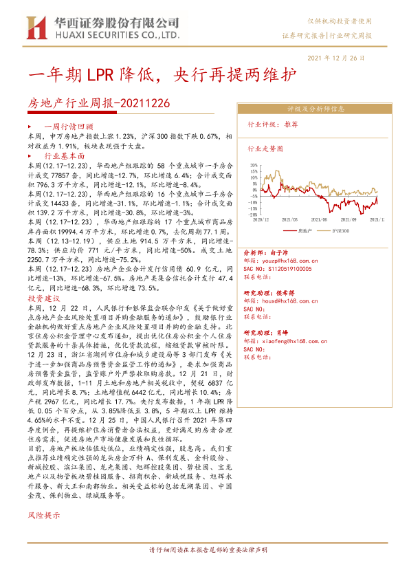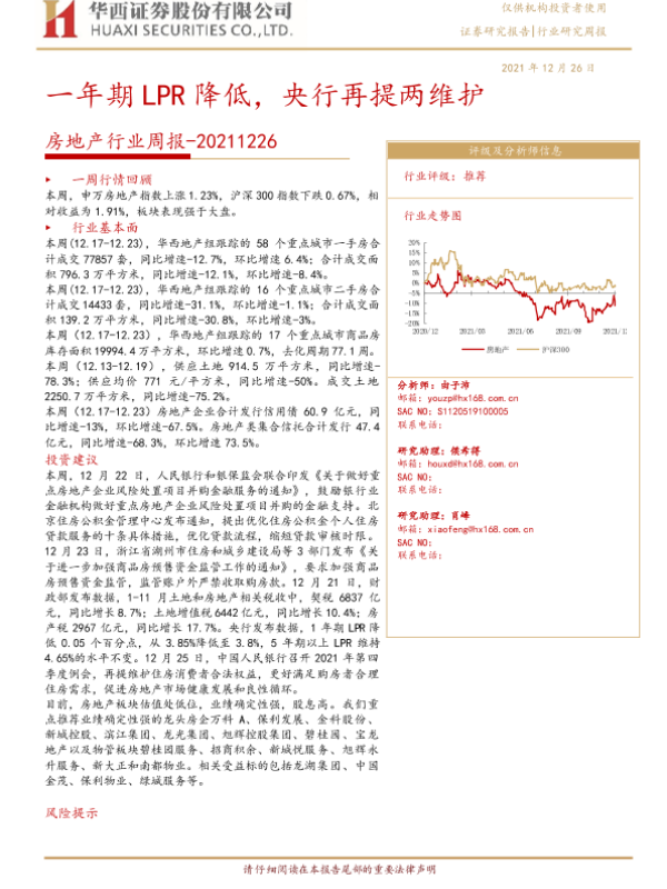 【华西证券】【20211226】房地产行业周报:一年期LPR降低,央行再提两维护-26页