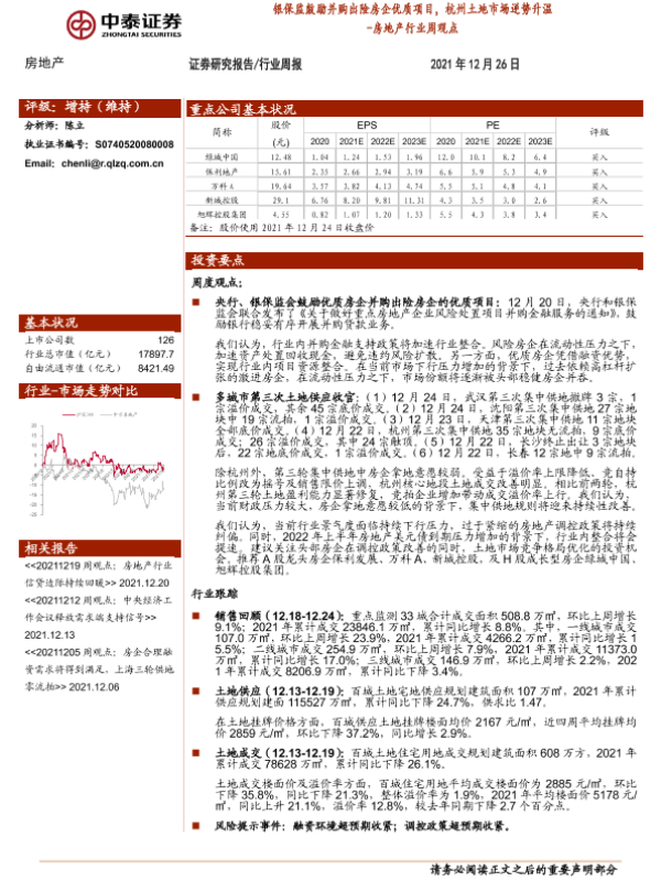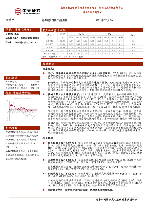 【中泰证券】【20211226】银保监鼓励并购出险房企优质项目,杭州土地市场逆势升温-11页