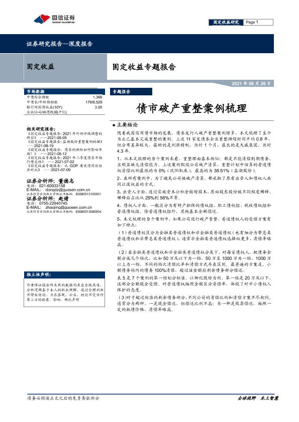 【国信证券】【20210826】固定收益专题报告:债市破产重整案例梳理-16页