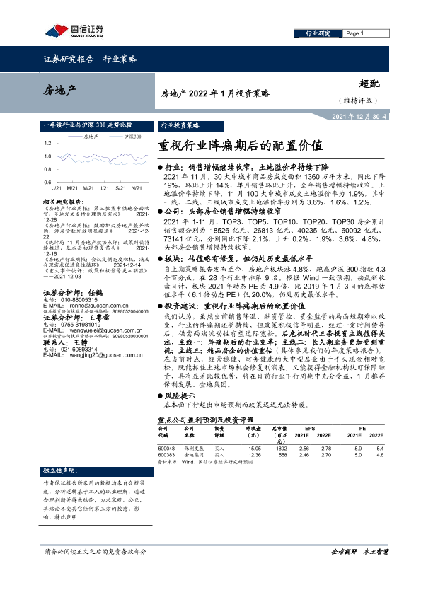 【国信证券】【20211230】房地产2022年1月投资策略:重视行业阵痛期后的配置价值-11页