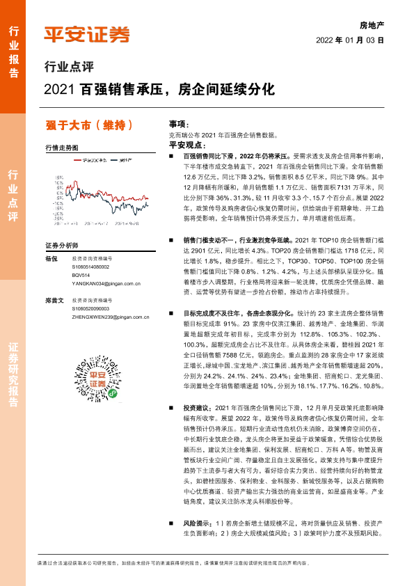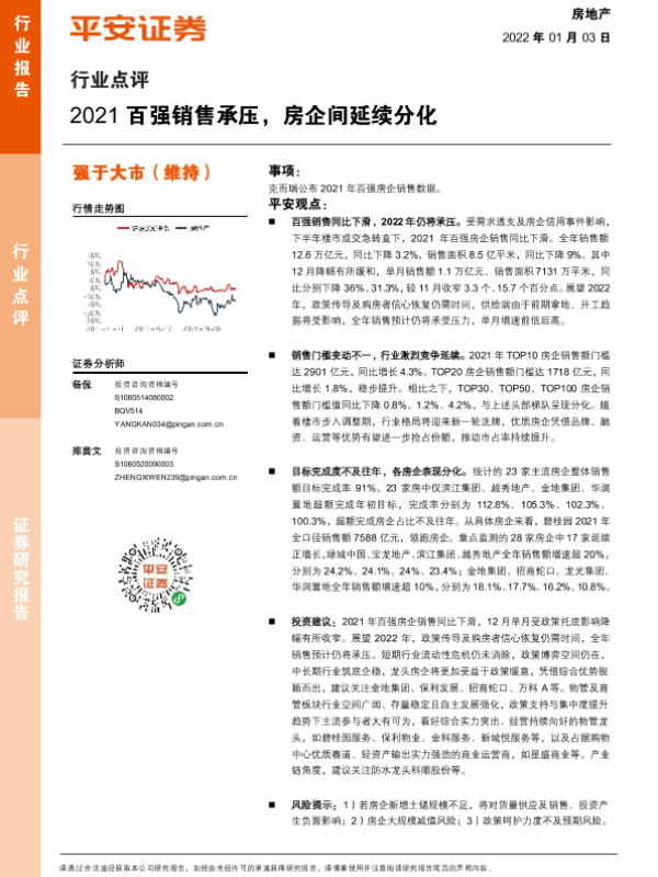 【平安证券】【20220103】2021百强销售承压,房企间延续分化-5页