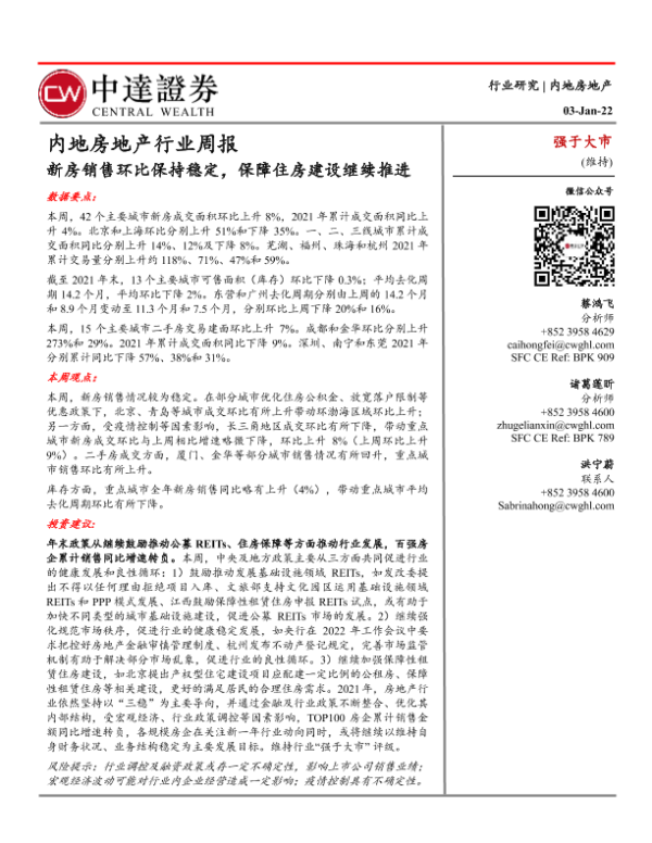 【中达证券】【20220103】内地房地产行业周报:新房销售环比保持稳定,保障住房建设继续推进-12页