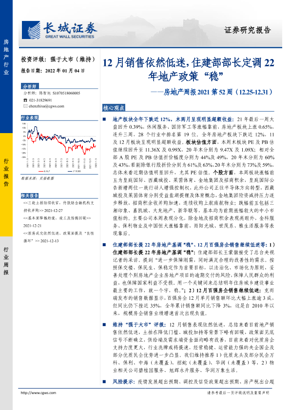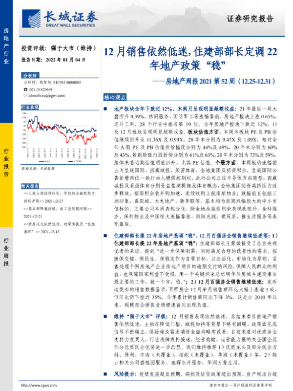 【长城证券】【20220104】12月销售依然低迷,住建部部长定调22年地产政策“稳”-14页
