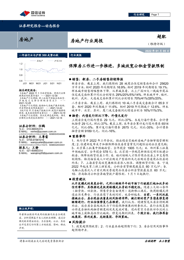 【国信证券】【20220105】房地产行业周报:保障房工作进一步推进,多城放宽公积金贷款限制-8页