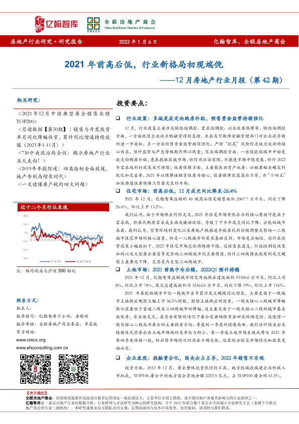【亿翰智库】【20220106】12月房地产行业月报:2021年前高后低,行业新格局初现端倪-29页