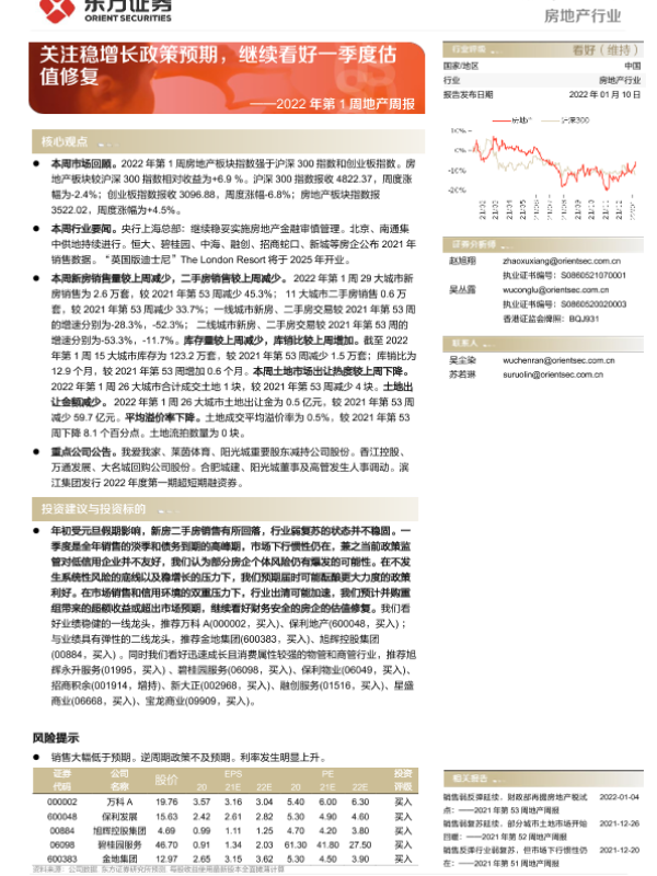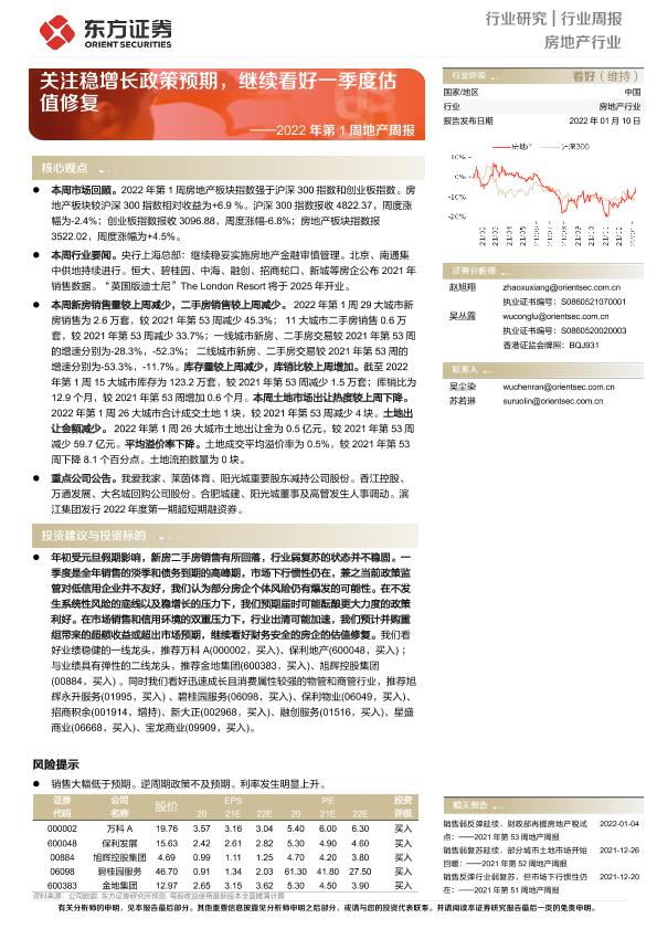 【东方证券】【20220110】2022年第1周地产周报-关注稳增长政策预期,继续看好一季度估值修复-15页
