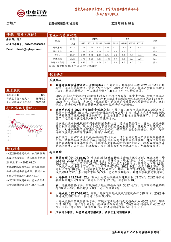 【中泰证券】【20220109】贷款支持合理住房需求,北京发布首批集中供地公告-11页