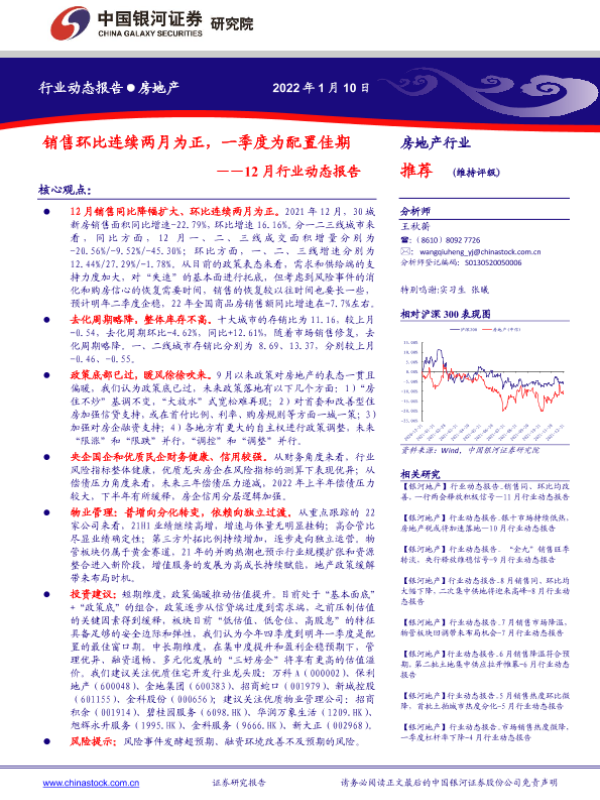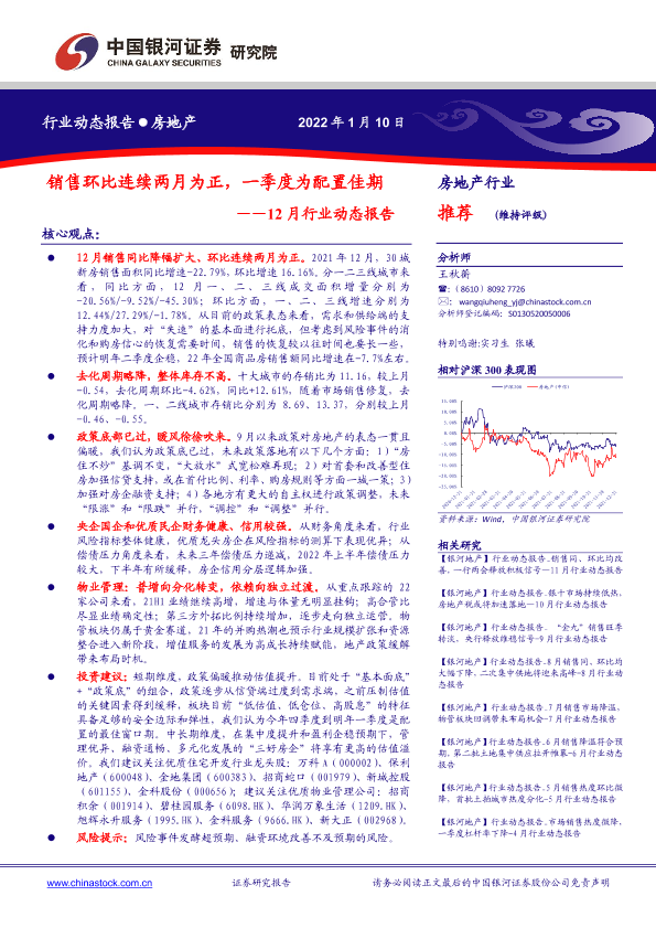 【银河证券】【20220110】销售环比连续两月为正,一季度为配置佳期——12月行业动态报告-36页
