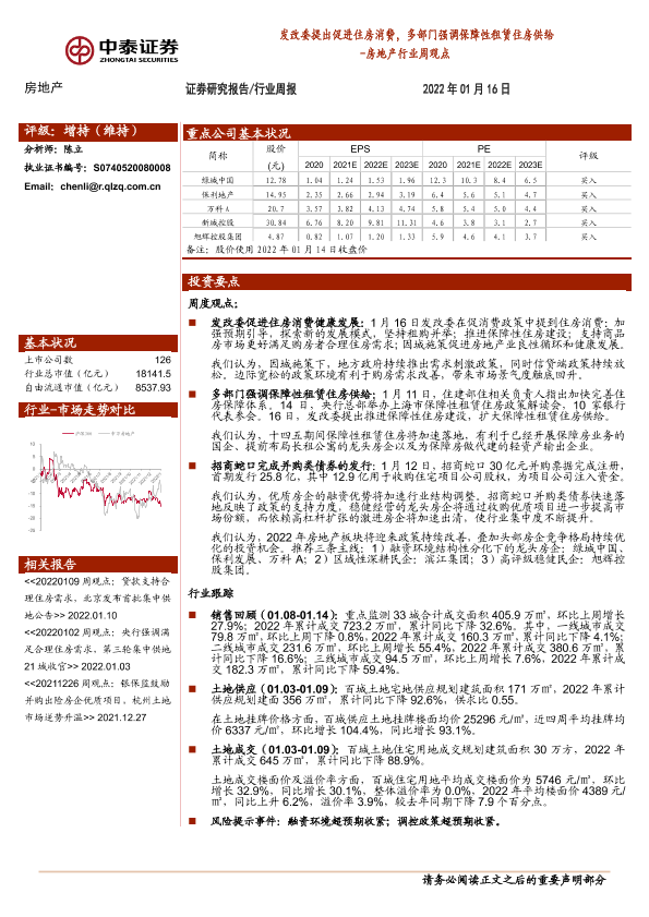 【中泰证券】【20220116】发改委提出促进住房消费,多部门强调保障性租赁住房供给-11页