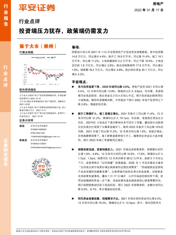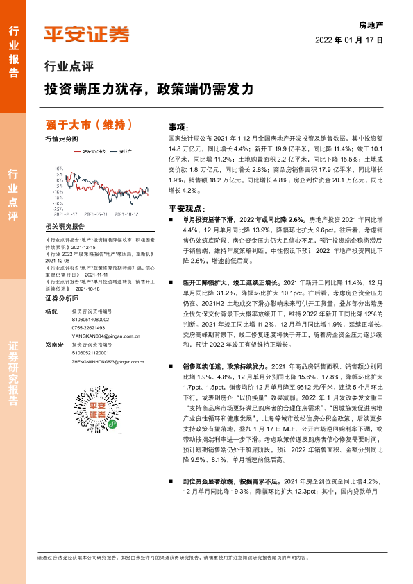 【平安证券】【20220117】房地产行业点评:投资端压力犹存,政策端仍需发力-7页