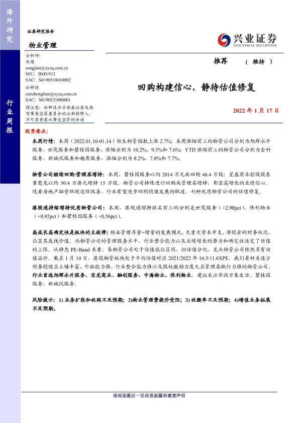 【兴业证券】【20220117】物业管理行业周报:回购构建信心,静待估值修复-7页