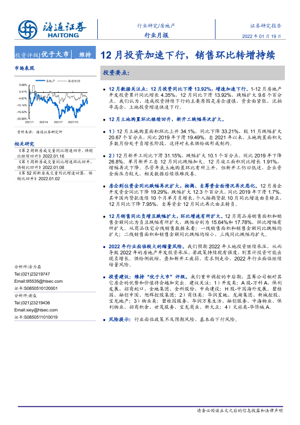 【海通证券】【20220119】12月投资加速下行,销售环比转增持续-12页