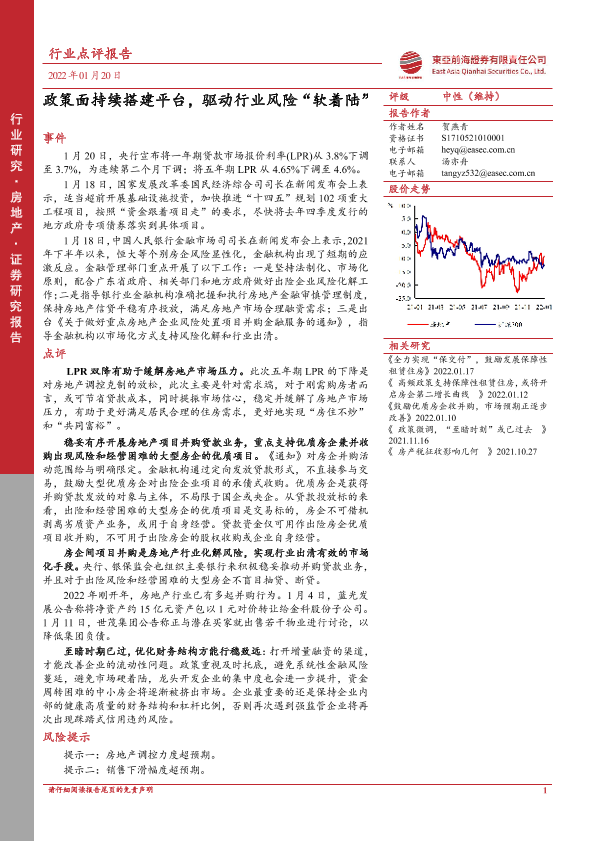 【东亚前海证券】【20220120】政策面持续搭建平台,驱动行业风险“软着陆”-3页