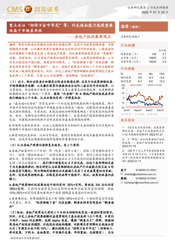 【海通证券】【20220123】房地产板块最新观点:重点关注“招保万金中华龙”等,内生造血能力选股重要性高于市场差异性-3页