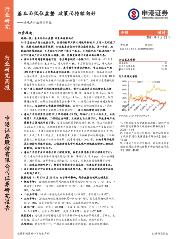 【申港证券】【20220123】房地产行业研究周报:基本面低位盘整 政策面持续向好-13页