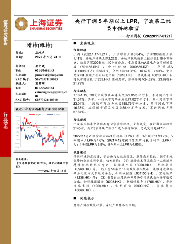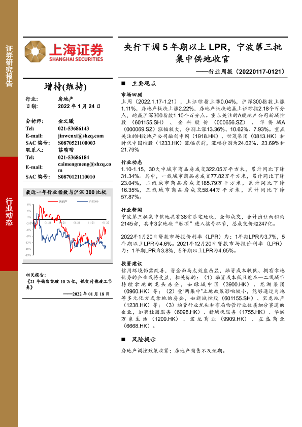 【上海证券】【20220124】房地产行业周报:央行下调5年期以上LPR,宁波第三批集中供地收官-12页