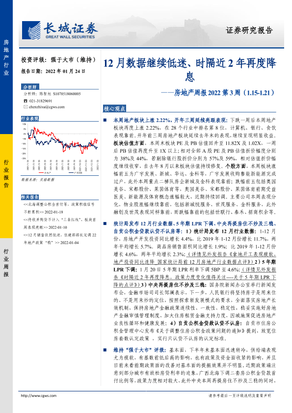 【长城证券】【20220124】12月数据继续低迷、时隔近2年再度降息-14页