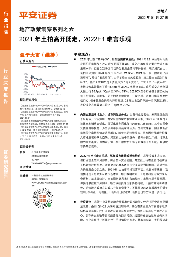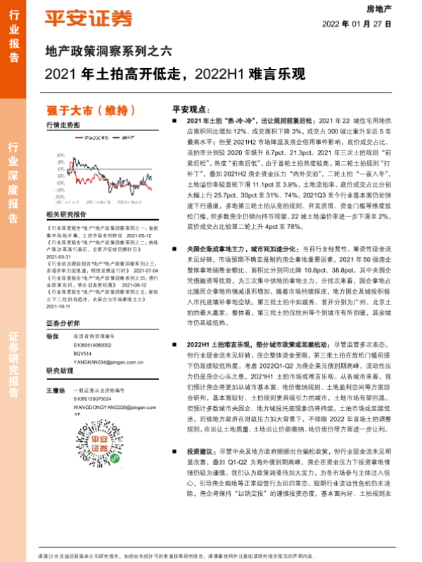 【平安证券】【20220127】2021年土拍高开低走,2022H1难言乐观-17页