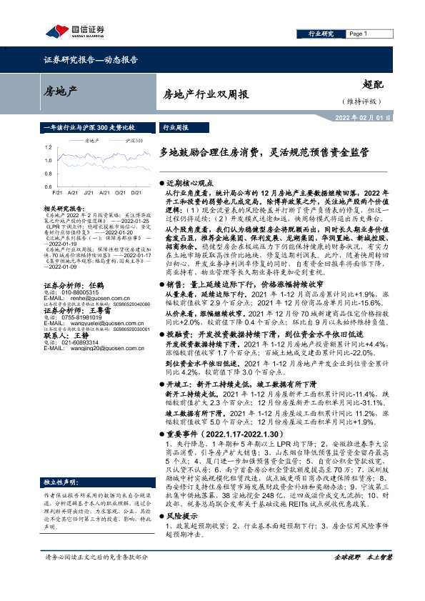 【国信证券】【20220201】房地产行业双周报:多地鼓励合理住房消费,灵活规范预售资金监管-10页