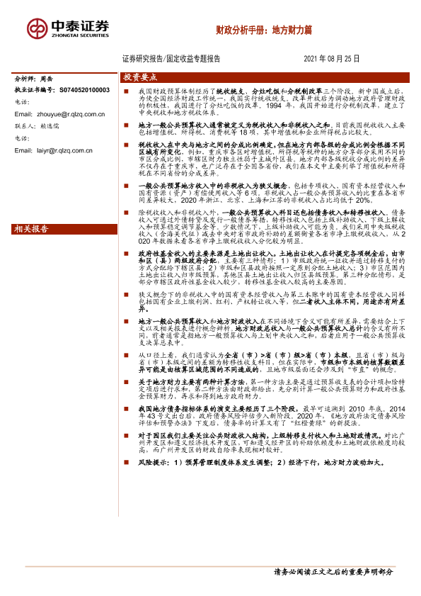 【中泰证券】【20210825】固定收益专题报告:财政分析手册,地方财力篇-35页