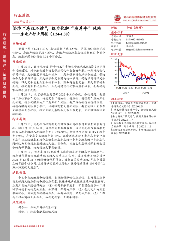 【东亚前海证券】【20220207】坚持“房住不炒”,稳步化解“灰犀牛”风险-11页