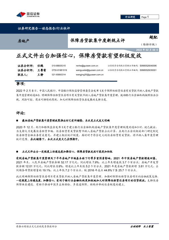 【国信证券】【20220209】保障房贷款集中度新规点评:正式文件出台加强信心,保障房贷款有望积极发放-5页