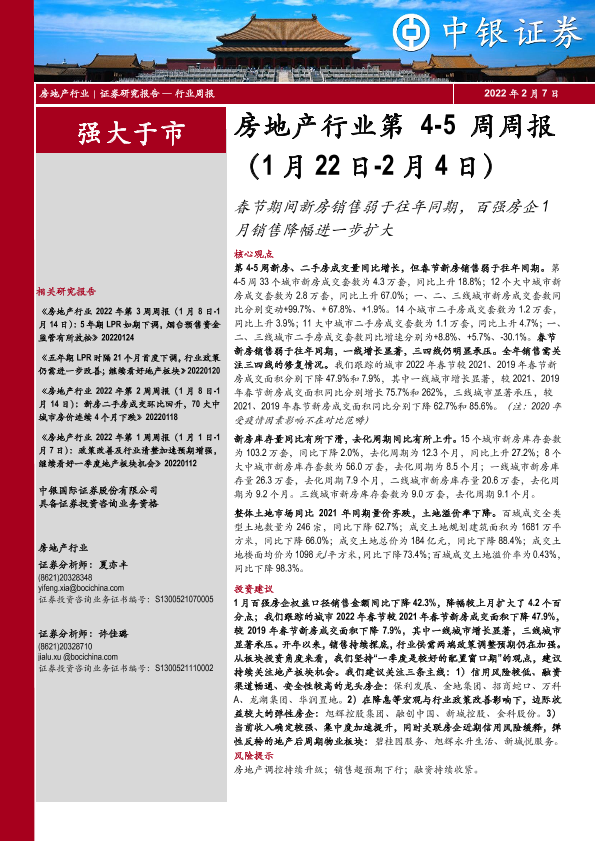 【中银证券】【20220207】春节期间新房销售弱于往年同期,百强房企1月销售降幅进一步扩大-23页