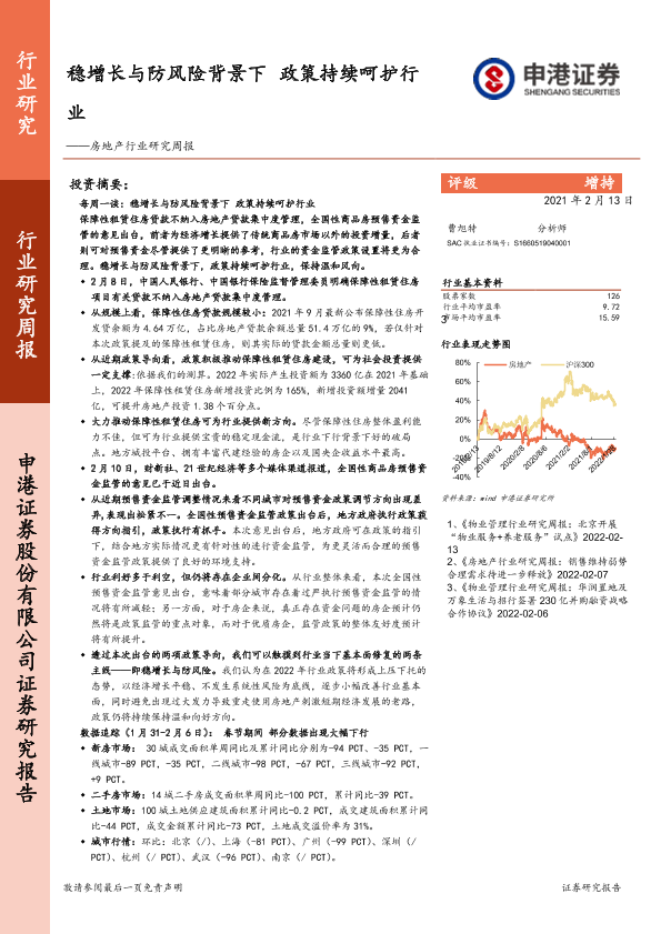 【申港证券】【20220213】稳增长与防风险背景下政策持续呵护行业-13页