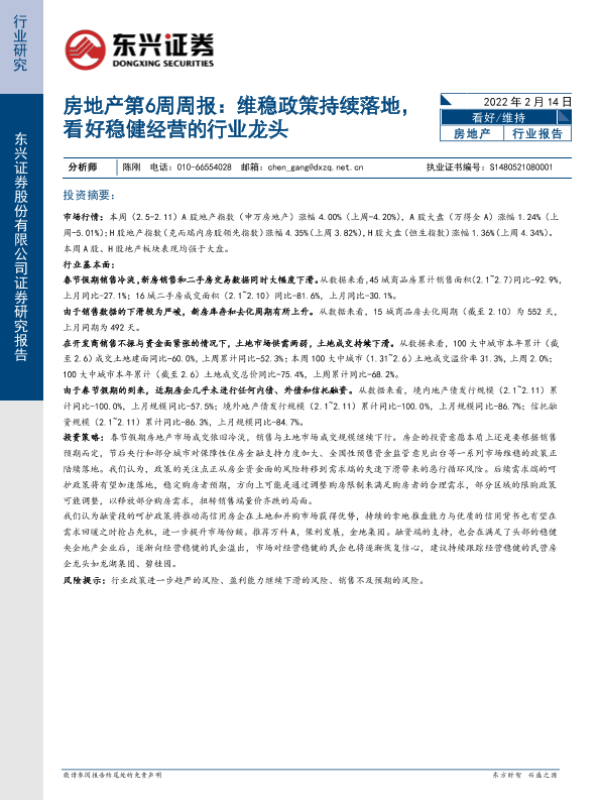 【东兴证券】【20220214】房地产第6周周报:维稳政策持续落地,看好稳健经营的行业龙头-29页